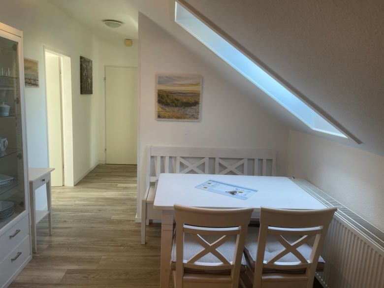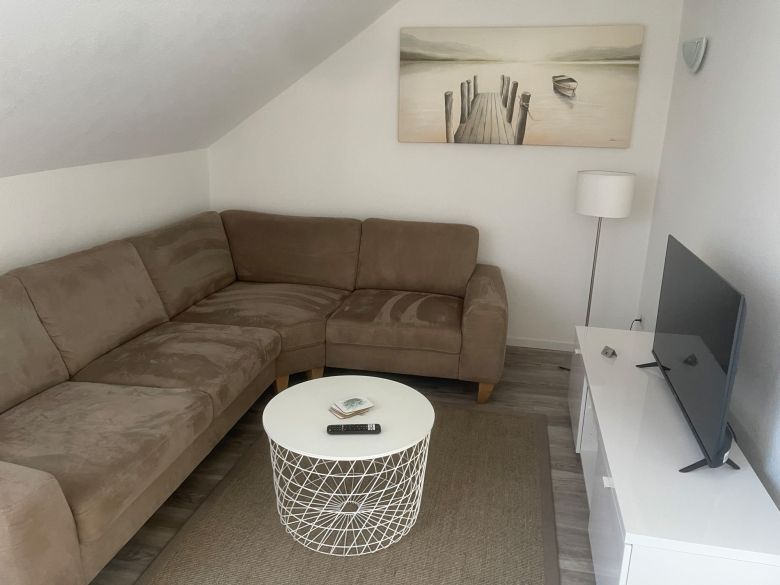 Die 52 qm große Ferienwohnung ,die für 4 Personen ausgerichtet ist, gliedert sich in ein Wohnzimmer mit Essecke und Flachbildschirm ,zwei Schlafzimmer ( 2 Doppelbetten ), Duschbad/WC , Flur und eine Küche.